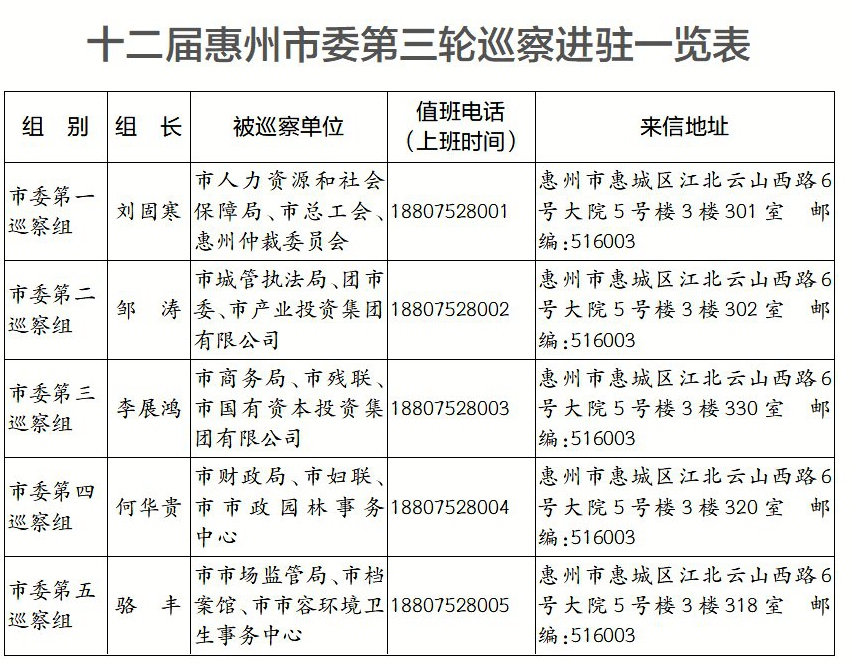 惠州日?qǐng)?bào)訊 (記者袁暢 通訊員惠巡辦)近日,十二屆惠州市委第三輪巡察5個(gè)巡察組已完成對(duì)市直15個(gè)單位的進(jìn)駐。至此,本輪巡察全面展開。被巡察單位分別召開巡察進(jìn)駐動(dòng)員會(huì)。會(huì)前,各市委巡察組向被巡察黨組織主要負(fù)責(zé)人通報(bào)了有關(guān)工作安排;會(huì)上,各市委巡察組組長(zhǎng)作了動(dòng)員講話,對(duì)高質(zhì)量開展巡察工作提出明確要求。