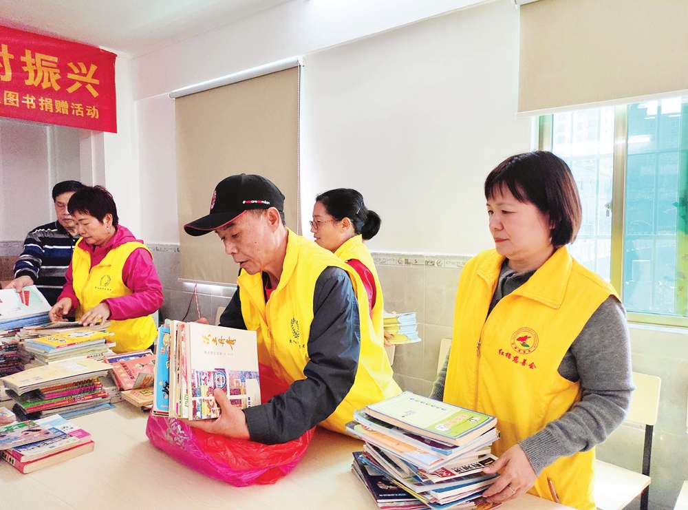 志愿者捐書下鄉(xiāng)。 惠州日?qǐng)?bào)記者侯縣軍 攝
