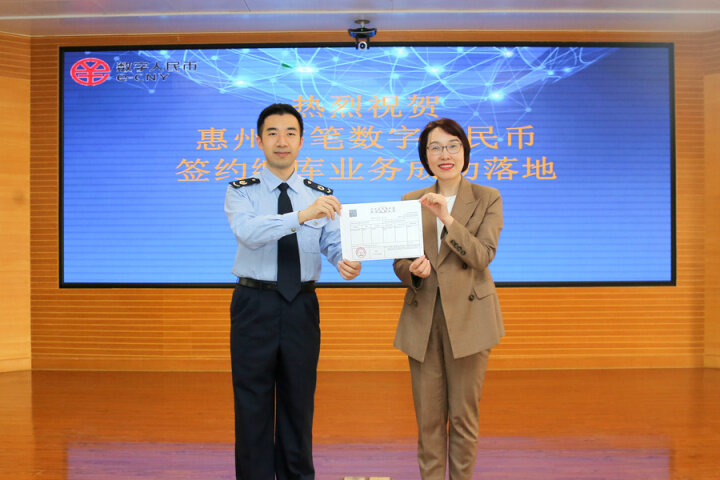 惠州首筆數(shù)字人民幣繳納稅費業(yè)務成功落地。