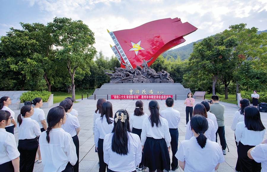 在惠東縣高潭中洞革命老區(qū)紀念碑前,廣東省“巾幗文明崗”領(lǐng)銜人、惠州城市職業(yè)學院馬克思主義學院院長孟美玲,聲情并茂地講述高潭中洞的革命歷史,戴煥其、英雄母親吳嫂等革命先烈的紅色故事,高潭革命精神的深刻內(nèi)涵和時代價值,號召大家學習忠誠如鐵、敢為人先、不怕犧牲、一往無前的高潭革命精神。沉浸式的宣講,滌蕩著在場的每一個人的心靈。