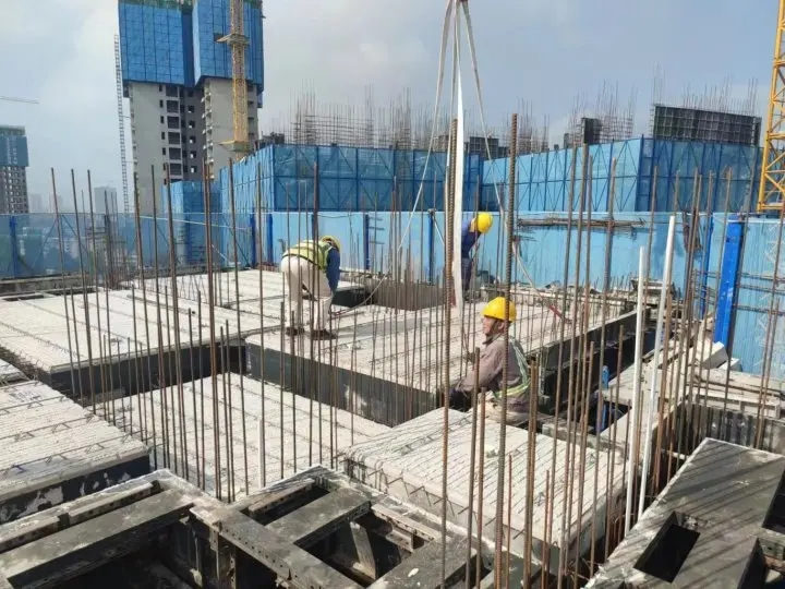 我市某住宅項(xiàng)目實(shí)施裝備式建筑,正在安裝預(yù)制混凝土構(gòu)建。
