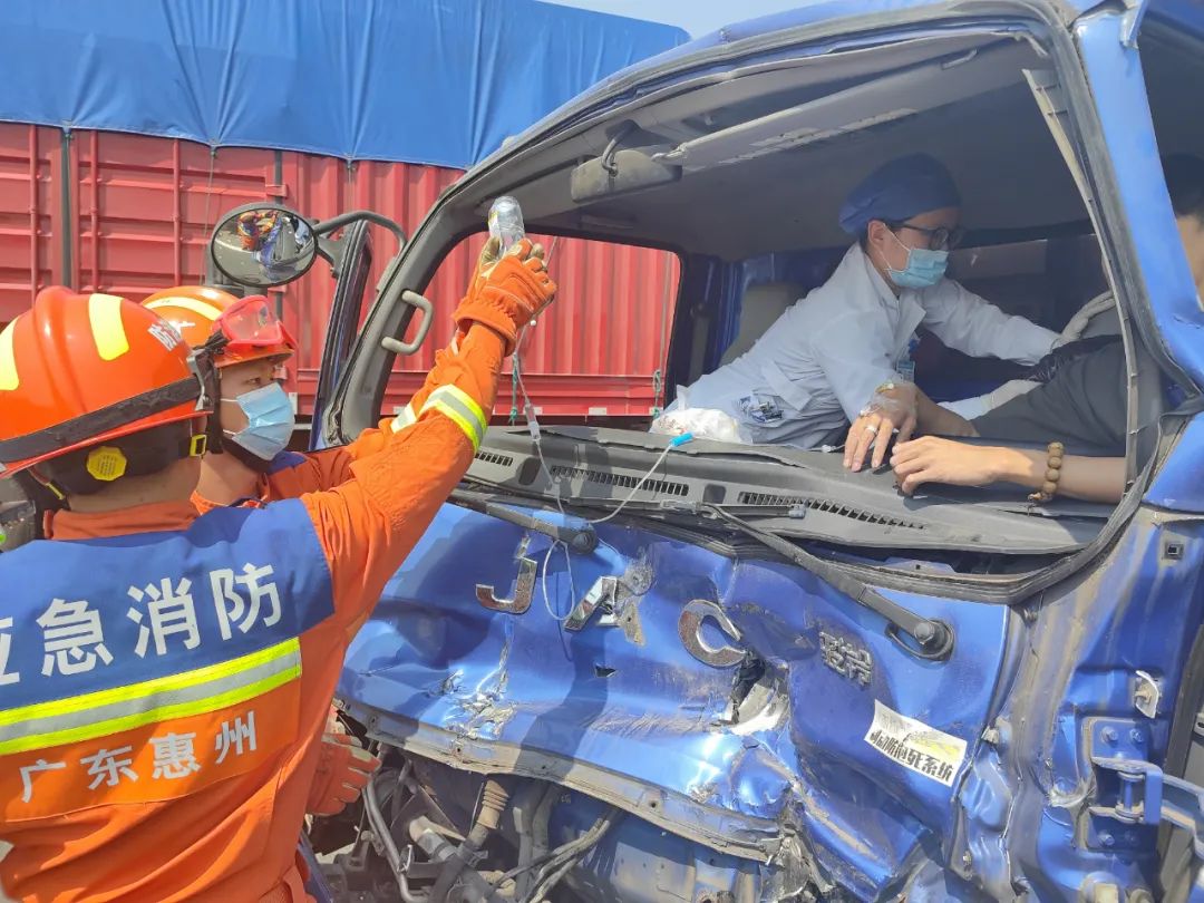 貨車司機(jī)雙腿被卡在方向盤下無法移動