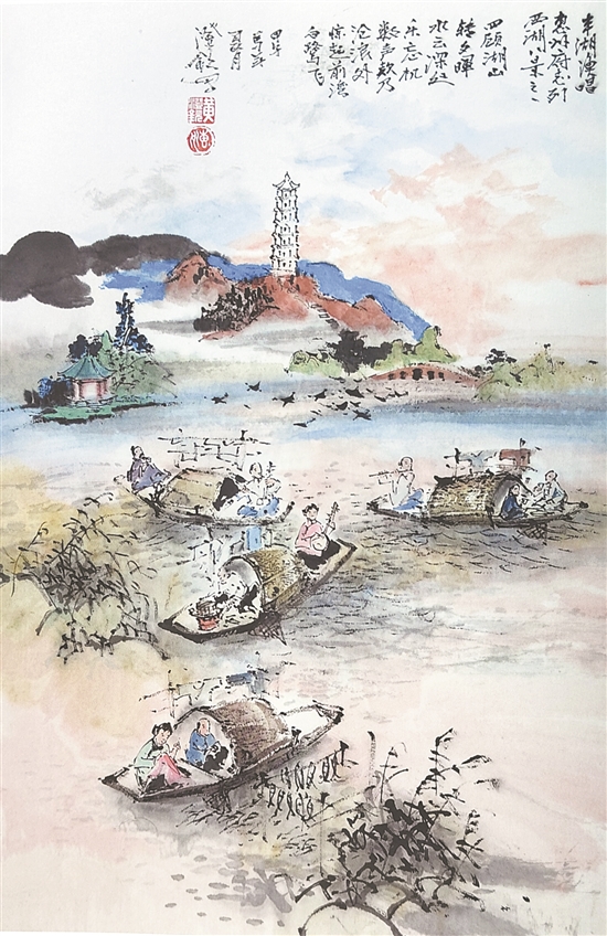 不僅有絕佳的自然風(fēng)景,“西湖八景”還氤氳著濃厚的民間生活氣息。周邊居民近取湖利,亦漁亦農(nóng),朝耕暮漁。他們出湖打魚(yú)撈蝦,入城賣菜買肥,棹舟一葉,穿梭往返于西湖碧波中。獨(dú)特的生活方式和優(yōu)美的生態(tài)環(huán)境,孕育了充滿鄉(xiāng)土氣息和古城風(fēng)情的“豐湖漁唱”;“半徑樵歸”也是如此,寫(xiě)出了西湖人家過(guò)著半農(nóng)半商、自適其適的生活。