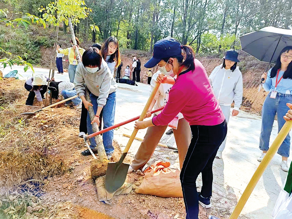 在林場道路兩旁,女黨員們拿著鐵鍬鋤頭,扶苗填坑、協(xié)同合作種下一棵棵樹苗。共青團(tuán)龍門縣委員會(huì)學(xué)少部負(fù)責(zé)人路裕婷說,“市婦聯(lián)號(hào)召我們惠州女性、女黨員要爭當(dāng)建設(shè)‘綠美惠州’的宣傳員,參加這次活動(dòng)為惠州增添一片綠,我感到非常光榮。”當(dāng)天,50余名學(xué)員共植下100棵香樟樹。