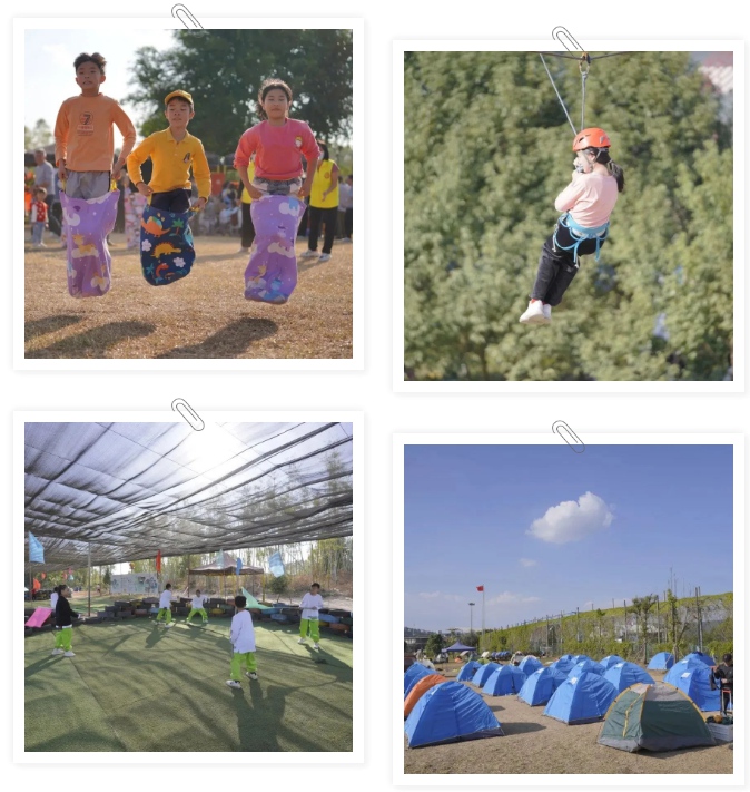 我們可以玩拓展游戲、露營、看表演、吃美食、放煙花、參加篝火晚會……