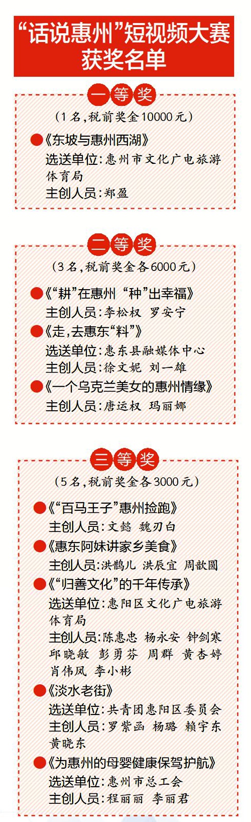 據(jù)了解,2022年7月15日,由中共惠州市委宣傳部主辦、惠州日?qǐng)?bào)社承辦的“話說(shuō)惠州”短視頻大賽正式啟動(dòng);顒(dòng)為期半年,共征集展播參賽作品近150條,成為當(dāng)年惠州關(guān)注度最高、影響力最大的城市形象主題短視頻宣傳活動(dòng),獲得社會(huì)各界廣泛好評(píng)。