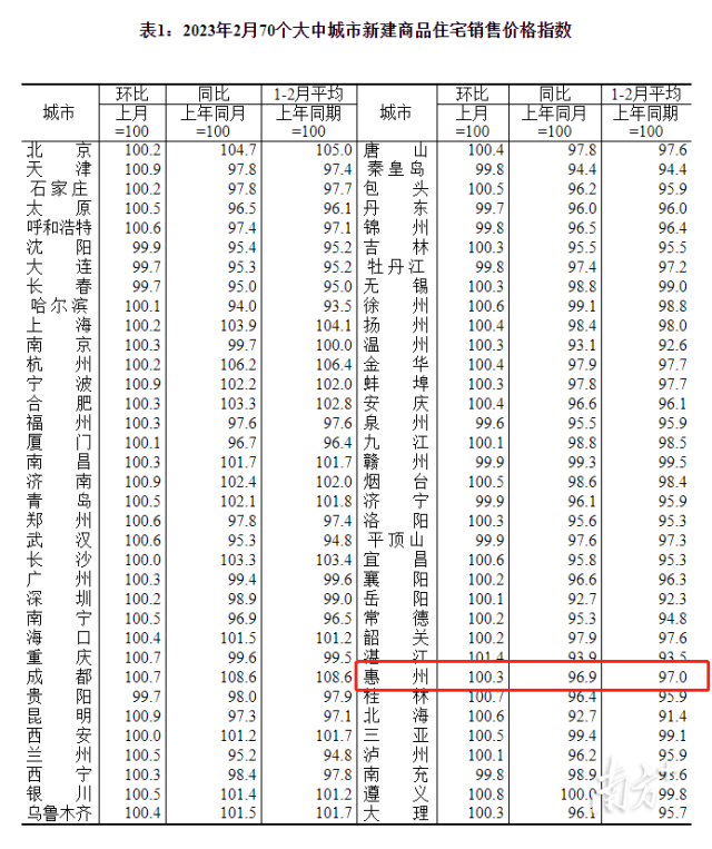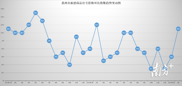 近日,國家統(tǒng)計局公布《2023年2月份70個大中城市商品住宅銷售價格變動情況》。數(shù)據(jù)顯示,2月份新建商品住宅銷售價格環(huán)比上漲城市達55個,較1月分別增加19個,其中,新春供需市場穩(wěn)步回暖的惠州新建商品住宅銷售價格環(huán)比上漲0.3個百分點。