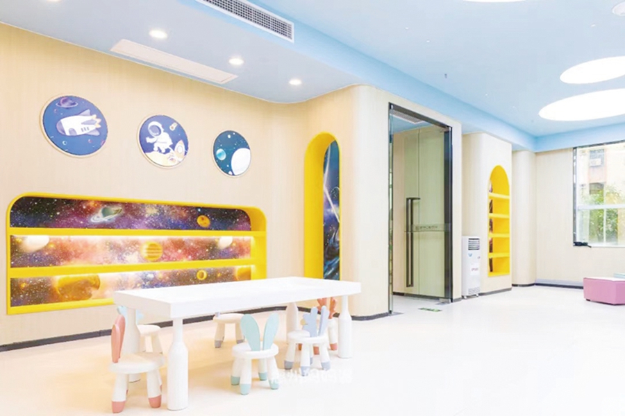 惠口兒童牙科中心診室環(huán)境溫馨夢幻,整體色調以黃、綠、粉、藍為主,所有的細節(jié)都充分考慮到兒童的心理和生理特點,融入了很多兒童喜歡的元素,讓小朋友從進入診區(qū)的那一刻就產生愉悅感。以“動物森林”為主題的候診中心,設置兒童游戲區(qū)、兒童讀書角、科普宣教區(qū)3大區(qū)域,讓小朋友們可以開心候診;12間獨立診室配備貼合兒童背部的兒童牙椅,并且裝配了顯示屏,讓小朋友看著動畫片接受治療。