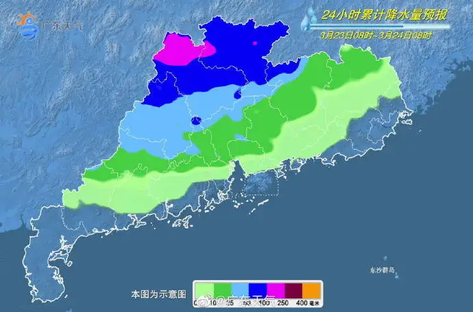 預(yù)計,3月23日08時至24日08時,貴州東南部、湖南南部、江西中南部、浙江南部、福建西部和北部、廣西東北部、廣東北部等地的部分地區(qū)有大到暴雨,其中,福建西北部、廣東西北部等地局地有大暴雨(100~130毫米)。上述部分地區(qū)伴有短時強降水(最大小時降雨量20~50毫米,局地可超過60毫米),局地有雷暴大風(fēng)或冰雹等強對流天氣。