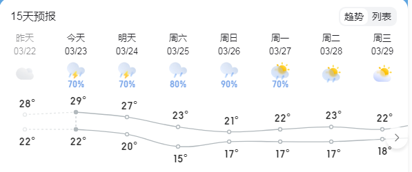 【惠州一周天氣趨勢】