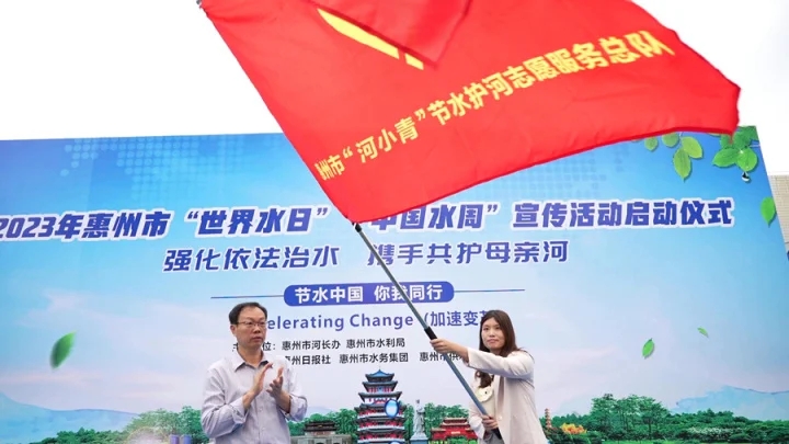 惠州市“河小青”節(jié)水護(hù)河志愿服務(wù)總隊(duì)成立授旗。