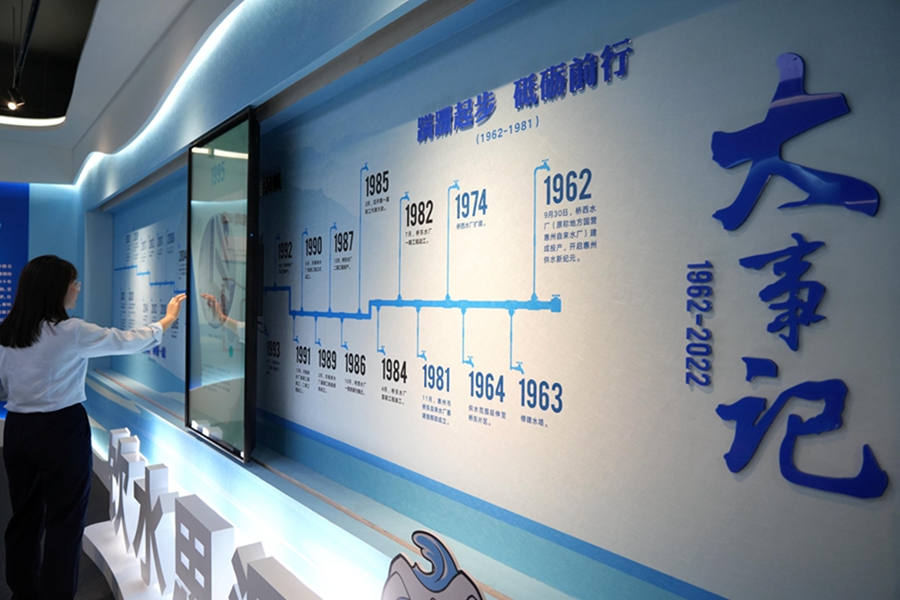 惠州供水文化展覽館位于江北云山東路27號惠州水務(wù)集團(tuán)大院內(nèi),以實(shí)物、文字、圖片等形式,梳理惠州城市供水發(fā)展歷史,展示惠州供水當(dāng)前取得成就。據(jù)了解,惠州市區(qū)供水歷史緣起于1962年9月建成的橋西水廠,當(dāng)時日供水量不足千噸的小水廠,經(jīng)過逾60年的發(fā)展,如今已成為擁有9座水廠、日供水量百萬噸的大型現(xiàn)代化企業(yè)。為了銘記歷史,記錄市區(qū)供水伴隨城市建設(shè)而孕育誕生、發(fā)展壯大的歷程,惠州市供水有限公司自2022年8月起籌建該展館,歷時半年建成對外開放。