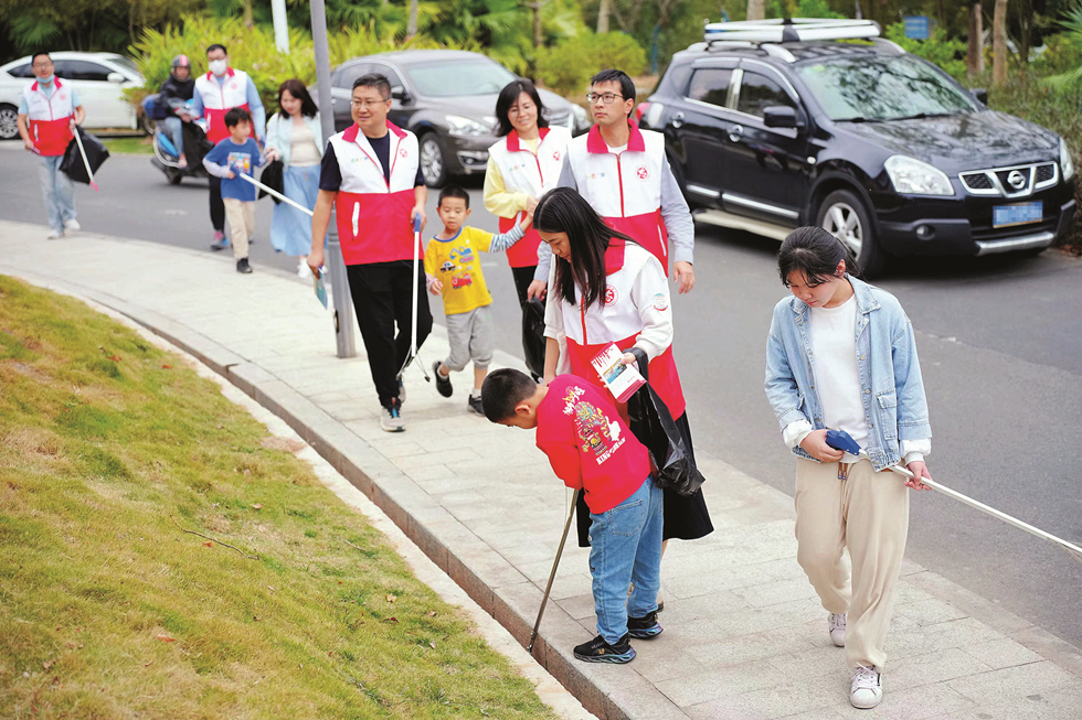 惠州港海關(guān)的志愿者小吳專門帶讀小學(xué)的兒子參加志愿服務(wù)活動。撿跑開始后,只見父子倆一人拿鉗,一人提垃圾袋,配合默契。小吳的孩子說:“通過這次活動,我學(xué)習(xí)了垃圾分類知識,以后回到學(xué)校要更加愛護環(huán)境,告訴同學(xué)們不要亂丟垃圾,以及如何分類垃圾!