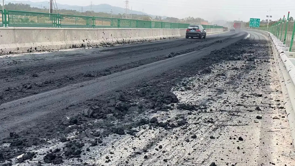 14時02分,根據(jù)監(jiān)控中心和養(yǎng)護(hù)工作人員提供的車輛信息,路政人員在惠河高速楊村收費站成功攔截遺灑煤灰的肇事車輛,并立即通知惠州市公安局交警支隊高速公路四大隊秀嶺中隊和惠州市交通運(yùn)輸局執(zhí)法支隊到現(xiàn)場處理。經(jīng)了解,該車運(yùn)載的煤灰為密封車廂裝載,但在行駛過程中車廂擋板出現(xiàn)松動,導(dǎo)致煤灰遺灑。遺灑之初,駕駛員對該情況有所察覺,但未及時進(jìn)行處理,最終導(dǎo)致了大量煤灰遺灑路面。