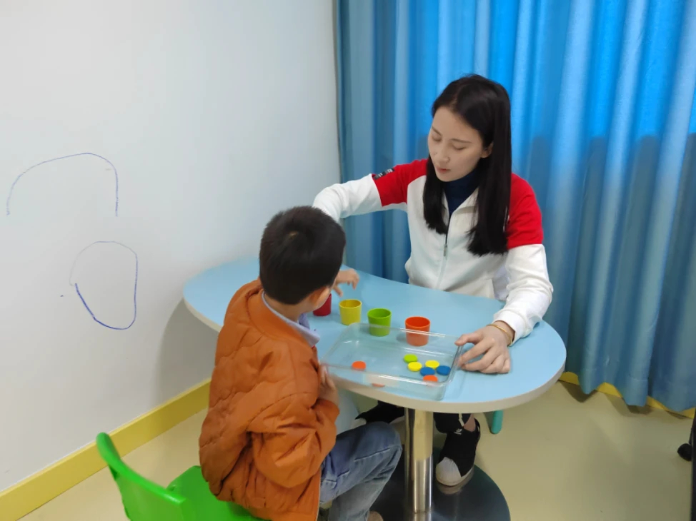 羅浩婧為孤獨(dú)癥兒童進(jìn)行康復(fù)訓(xùn)練。