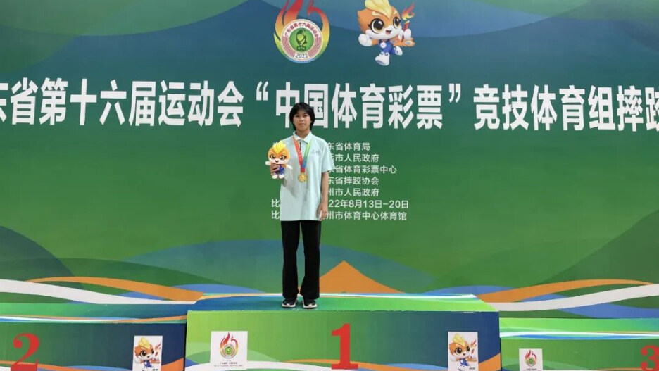 劉美希榮獲廣東省第十六屆運動會摔跤(自由式)女子乙組46KG第一名。