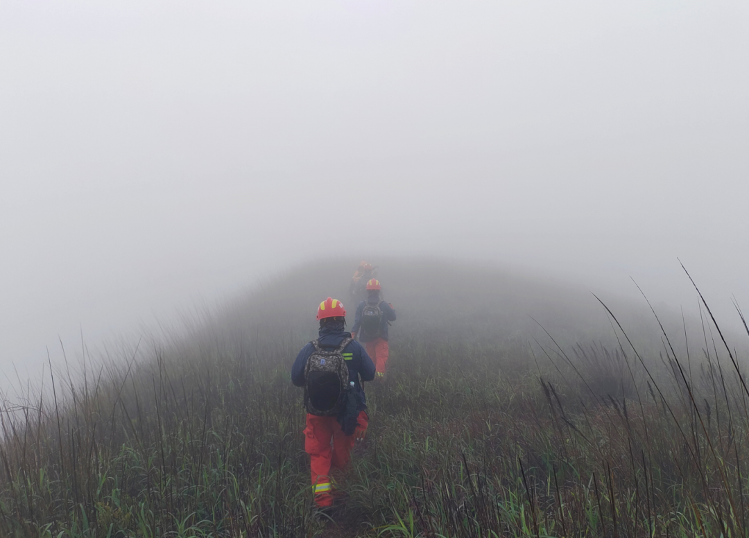 陰雨連綿,山路崎嶇、山體巖石濕滑,給救援隊的工作帶來了極大的困難和危險。救援隊伍行進(jìn)半山腰時,氣溫驟降,呼嘯的山風(fēng)伴隨著濛濛細(xì)雨打濕了救援隊員的臉龐。
