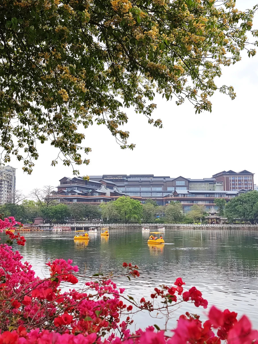 最是人間四月天,風(fēng)和景明花正好。在惠州西湖陳公堤,專屬美景也如約而至:魚木繁花怒放,美不勝收。