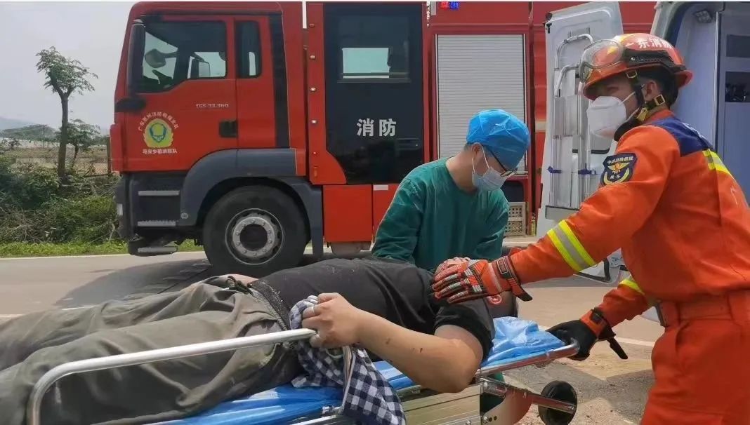 經(jīng)過約10分鐘的救援后,最終成功將被困司機救出,并護(hù)送上救護(hù)車,交由醫(yī)護(hù)人員救治。