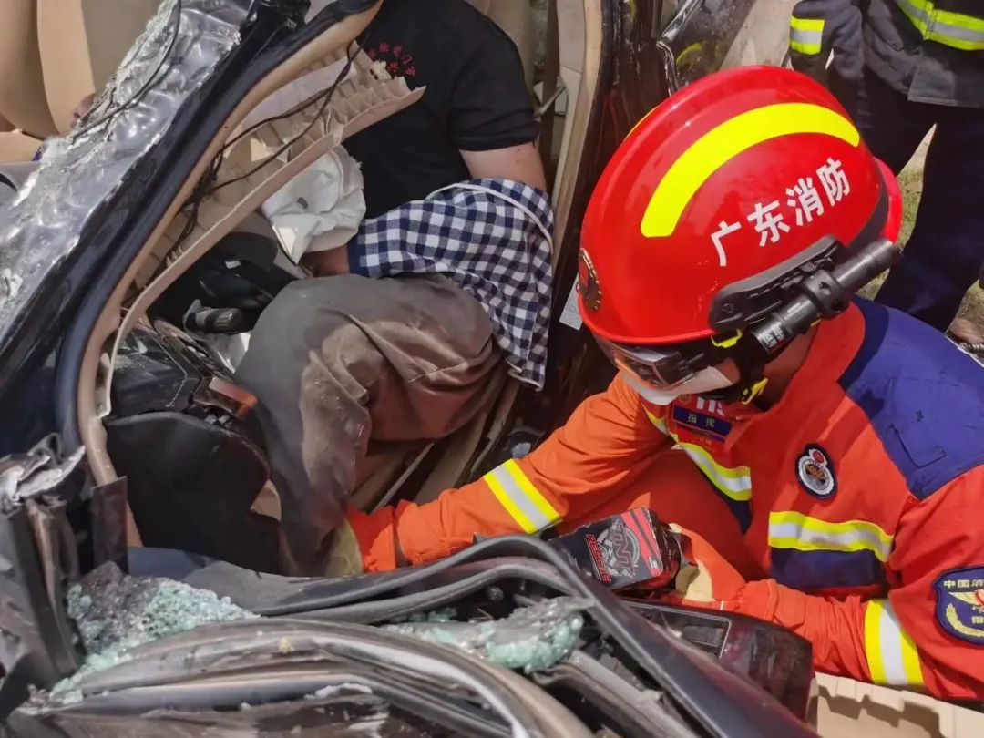 現(xiàn)場指揮員立即組織隊員利用液壓破拆工具給小轎車破拆,為被困人員開辟逃生通道。