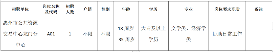 5、【惠州市公共資源交易中心龍門分中心2023年招聘編外人員】