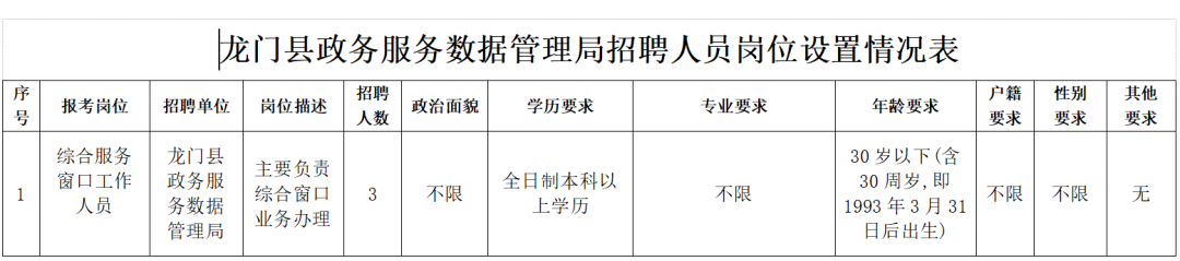 4、【龍門縣政務服務數(shù)據(jù)管理局2023年招聘工作人員】