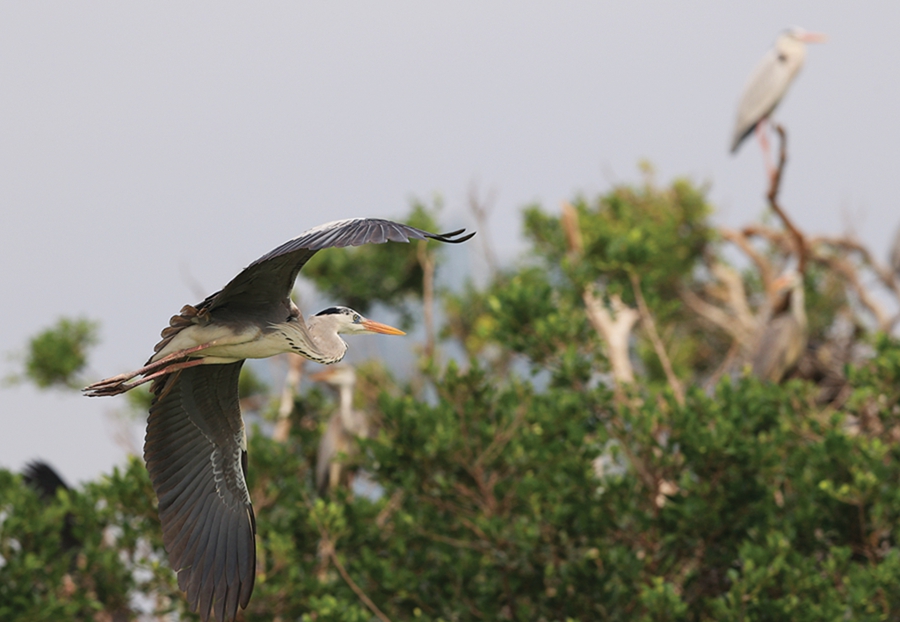 蒼鷺在島上穿梭。