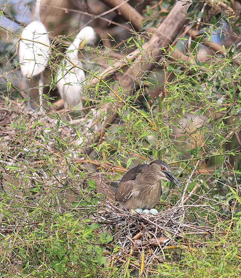 夜鷺在孵化小鳥。
