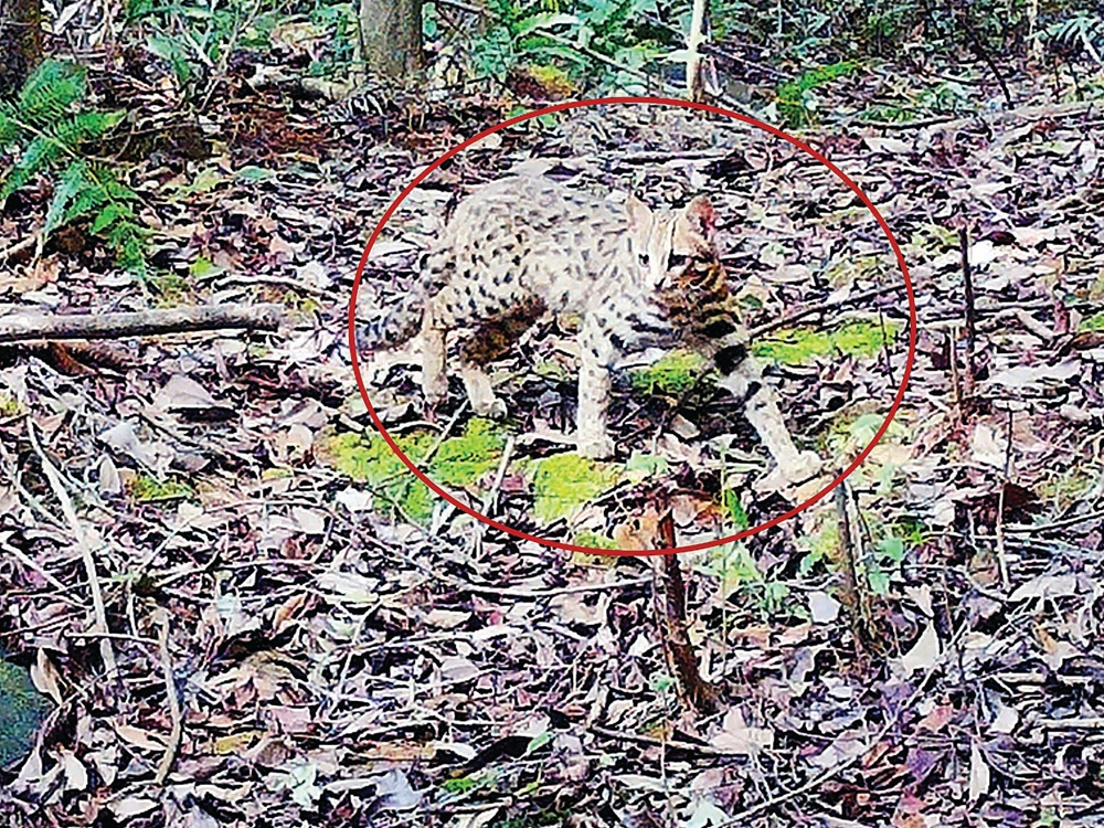 “看,這個(gè)鏡頭拍到的就是國(guó)家二級(jí)重點(diǎn)保護(hù)動(dòng)物——豹貓。它們身上的斑點(diǎn)很像銅錢(qián),因此也被稱(chēng)為‘銅錢(qián)貓’!痹摫Wo(hù)區(qū)有關(guān)負(fù)責(zé)人指著紅外相機(jī)拍攝的素材介紹說(shuō),豹貓的體型與家貓相仿,但豹貓更加纖細(xì),腿更長(zhǎng)。它們喜歡獨(dú)居,善于攀爬和游泳。畫(huà)面中的豹貓十分矯健,在山地林區(qū)、郊野灌叢和林緣村寨附近行走和覓食。