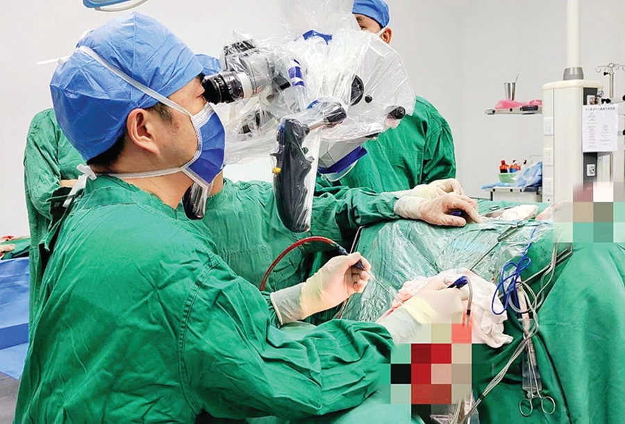 專家團(tuán)隊(duì)在為患者手術(shù);葜萑?qǐng)?bào)記者周智聰 通訊員張文杰 歐永杰 攝