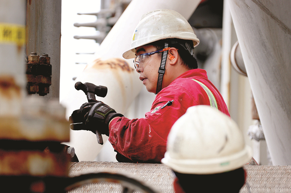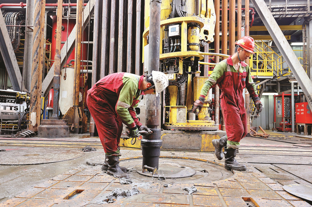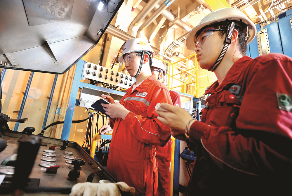 “國瑞”平臺機械師和維修工在維修設(shè)備。