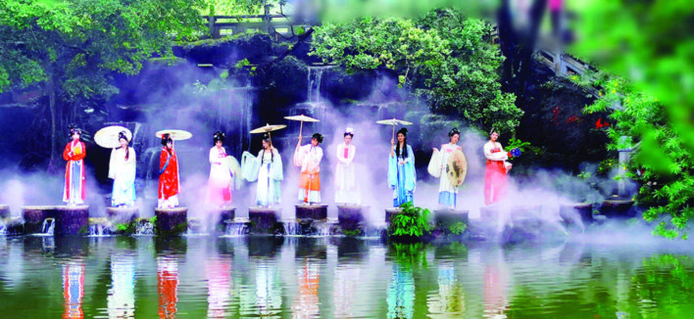 “五一”小長(zhǎng)假期間,一群身著漢服的小姐姐不時(shí)穿梭在景區(qū),開啟一場(chǎng)穿越時(shí)空的國風(fēng)踏青巡游。巡游以人間仙境為起點(diǎn),期間還經(jīng)過白蓮湖、美食街、湖心亭、會(huì)仙橋等景點(diǎn)。游客隨著巡游隊(duì)伍的腳步,仔細(xì)品味融合中國傳統(tǒng)文化和嶺南文化于一體的建筑,并在建筑前拍照留影,留下美好記憶。