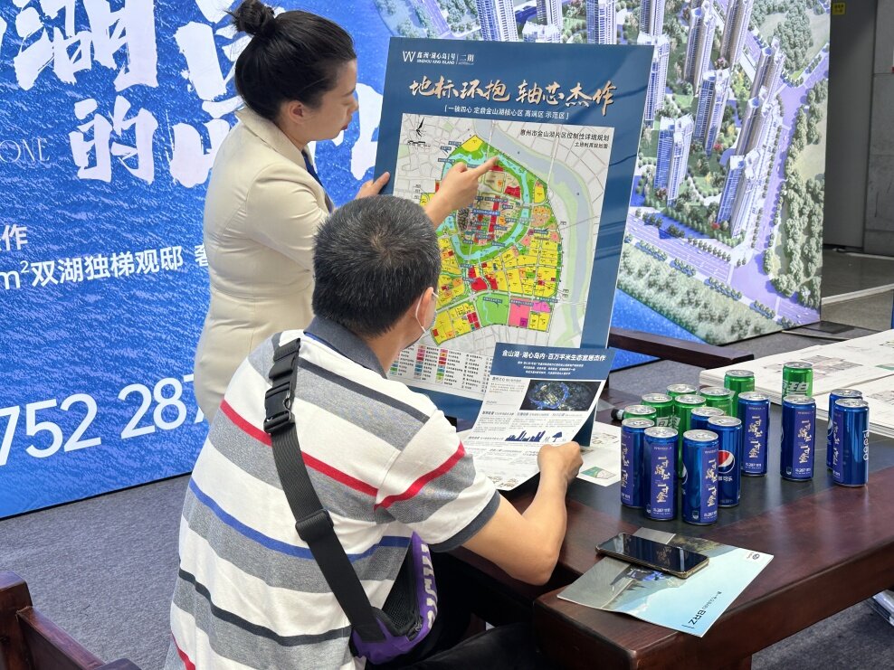 置業(yè)顧問為客戶介紹樓盤信息。在惠城區(qū)工作多年的丁先生此前已經(jīng)趁空余時(shí)間前往幾個(gè)樓盤看房,他提到,逛展會能夠快速篩選出滿足自己需求的意向樓盤,更方便“貨比三家”,避免了自己盲目前往,出現(xiàn)“白跑一趟”費(fèi)時(shí)費(fèi)力的情況。