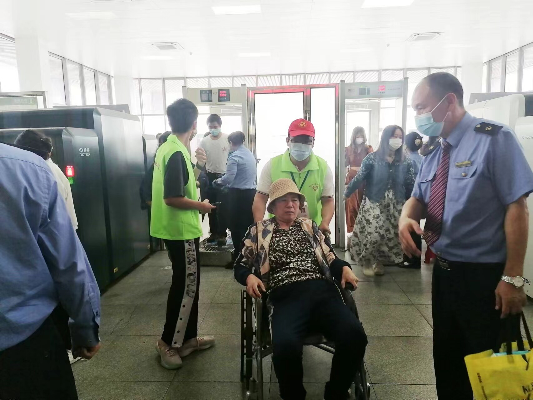 江志海見狀立馬上前熱情詢問(wèn)。旅客王女士說(shuō),坐在輪椅上的是其70多歲的母親,5年前因?yàn)榈昧四X梗,出行只能坐輪椅。當(dāng)天,他們要乘坐K726次列車回安徽亳州老家,眼看列車要到站了,怕趕不上火車,一家人很著急。