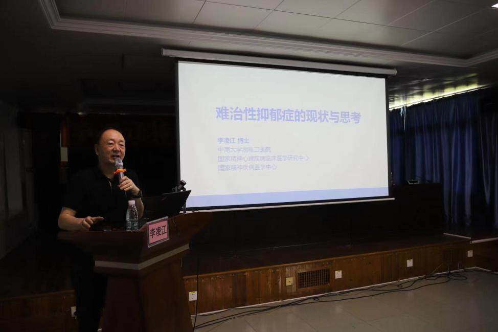 授牌儀式結(jié)束后,市二院舉辦學(xué)術(shù)交流活動(dòng),李凌江現(xiàn)場(chǎng)開展題為《難治性抑郁的診治新進(jìn)展》的專業(yè)授課,并且該院特聘教授劉鐵榜也開展《精神分裂癥的精神病理與診斷》專題授課。