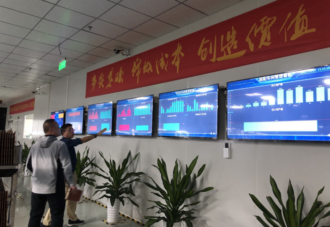 辰奕智能公司里數(shù)字化看板展現(xiàn)關(guān)鍵數(shù)據(jù)實時狀態(tài)和趨勢變化。