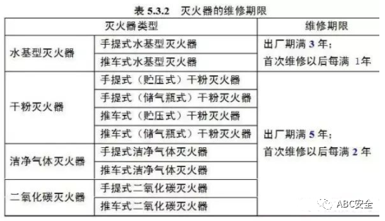 滅火器沒有達(dá)到報廢年限,也沒出現(xiàn)需要報廢的情況,滅火器外觀、性能正常就可以正常使用,可以參考《建筑滅火器配置驗(yàn)收及檢查規(guī)范》GB 50444-2008第5.3.2條所示的維修期限進(jìn)行維修,也可參考中國消費(fèi)品質(zhì)量安全促進(jìn)會發(fā)布的最新文件《滅火器產(chǎn)品維修、更換及售后服務(wù)》T/CPQS XF003-2023團(tuán)體標(biāo)準(zhǔn)第4.4.2條所示的使用期限進(jìn)行維修,但不做強(qiáng)制要求。