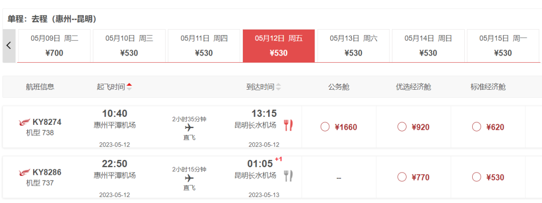 惠州10:40-13:10昆明
