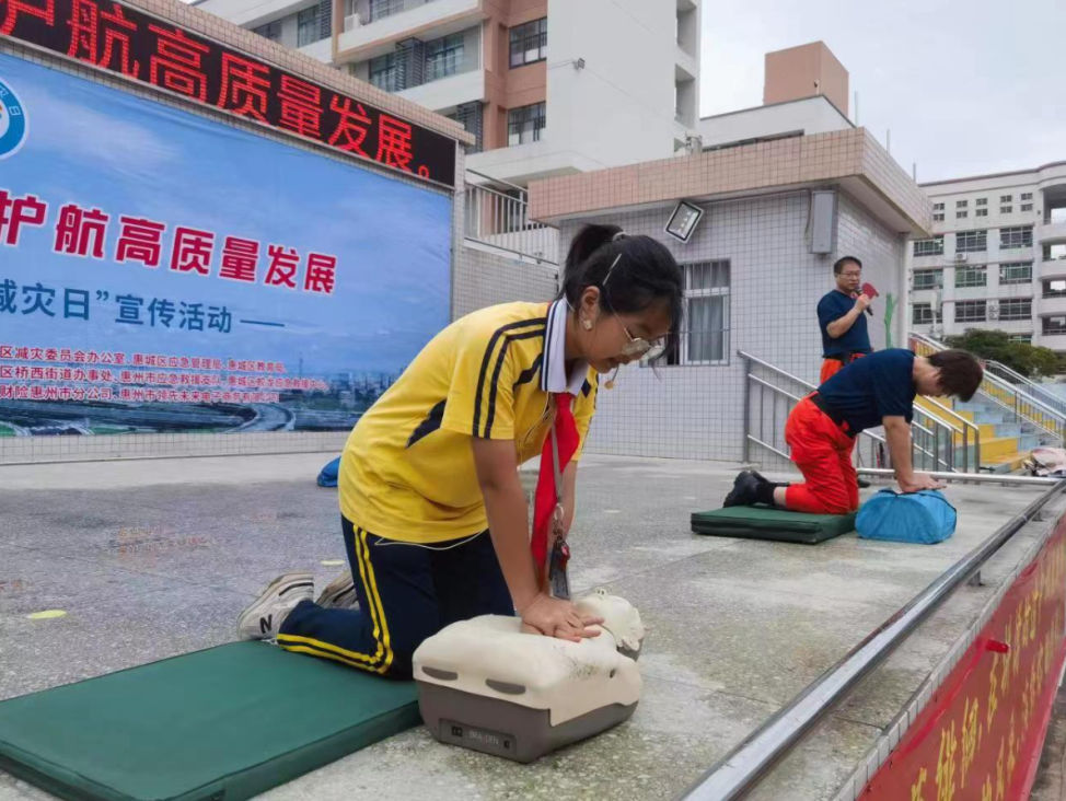 演練按預(yù)案進(jìn)行,開展防踩踏應(yīng)急疏散演練,學(xué)生從教室撤離到操場(chǎng)只用了3分多鐘,整個(gè)過程緊張、有條不紊。緊接著,由惠城區(qū)蛟龍應(yīng)急救援中心開展應(yīng)急心肺復(fù)蘇授課,普及急救常識(shí)。由市第五中學(xué)學(xué)生表演的情景劇《裂縫中仍有希望》,體現(xiàn)“災(zāi)難無情,生命無價(jià)”主題,提醒大家面對(duì)緊急情況時(shí),掌握防災(zāi)減災(zāi)知識(shí)和避災(zāi)自救技能的重要性。