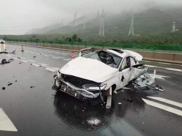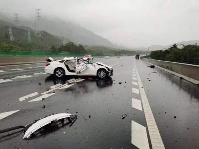 惠州市公安局交警支隊(duì)高一大隊(duì)警員進(jìn)行視頻巡查時(shí),在G15沈海高速公路汕頭2790公里處發(fā)現(xiàn)一輛白色轎車損傷嚴(yán)重,橫放在路上,正值下雨天能見(jiàn)度降低,情況十分危急,隨即通知附近巡邏警力和救援單位趕赴現(xiàn)場(chǎng)處置,防止二次事故發(fā)生。