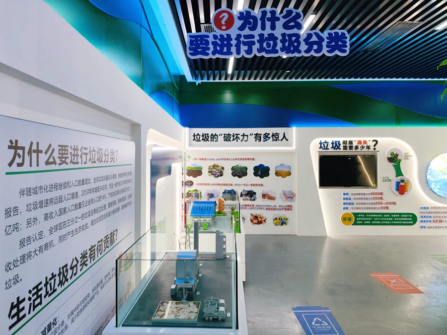 惠州市生活垃圾分類科普館是在惠州市城市生活垃圾分類工作領(lǐng)導(dǎo)小組辦公室指導(dǎo)下,由惠州市市容環(huán)境衛(wèi)生事務(wù)中心負(fù)責(zé)建設(shè)的現(xiàn)代化、沉浸式體驗的垃圾分類知識科普基地。該科普館位于惠城區(qū)青少年宮,建設(shè)面積約500平方米,是我市首個以垃圾分類為主題的科普教育場所,分為五大功能區(qū),按照前言、為什么要進(jìn)行垃圾分類、如何進(jìn)行垃圾分類、垃圾分類“惠州實踐”、趣味科技互動等進(jìn)行布局,開展深入淺出的科普教育,集科普性、互動性、趣味性和科技感于一體?破震^運用圖文展板、新媒體播放、VR互動等豐富多樣的形式,讓市民沉浸式了解垃圾造成的危害,掌握垃圾分類知識,學(xué)習(xí)生活垃圾分類小技巧。此外,科普館還展出了惠州中小學(xué)生利用廢舊材料制作出的精美作品。
