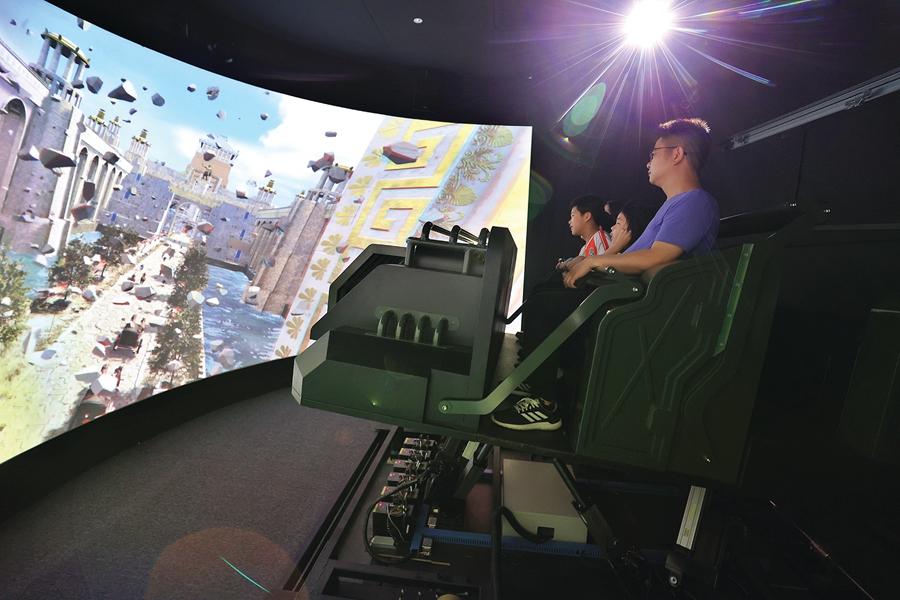 市民在裸眼3D飛行影院體驗(yàn);葜萑?qǐng)?bào)記者王建橋 攝