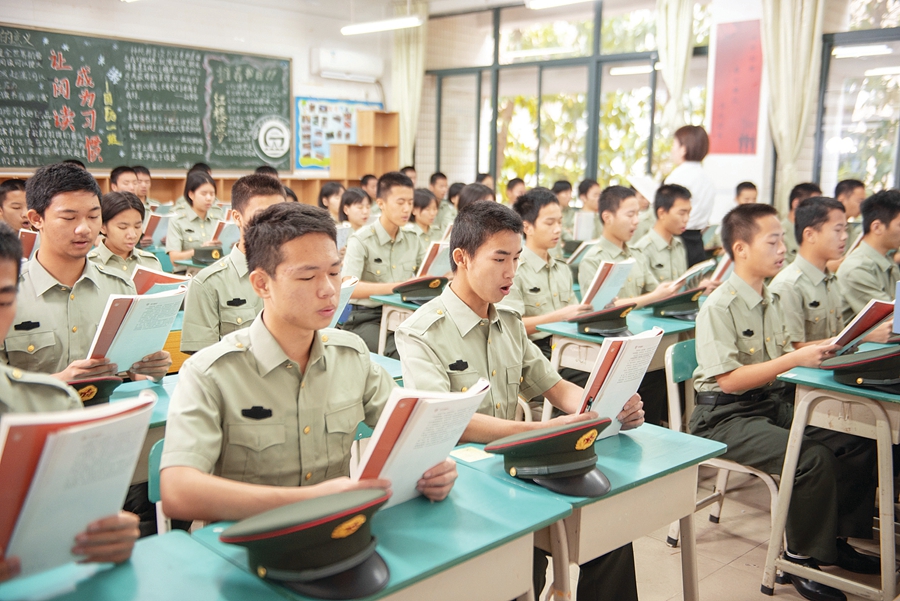 “我們采取的是準(zhǔn)軍事化的管理措施,培育‘八有’國防生,為軍隊(duì)和國防現(xiàn)代化建設(shè)培養(yǎng)優(yōu)秀人才!标惤B安介紹,學(xué)校目前已有高一高二國防班學(xué)生共205人,向全校師生展示了他們堅(jiān)強(qiáng)團(tuán)結(jié)、青春向上的美好形象。