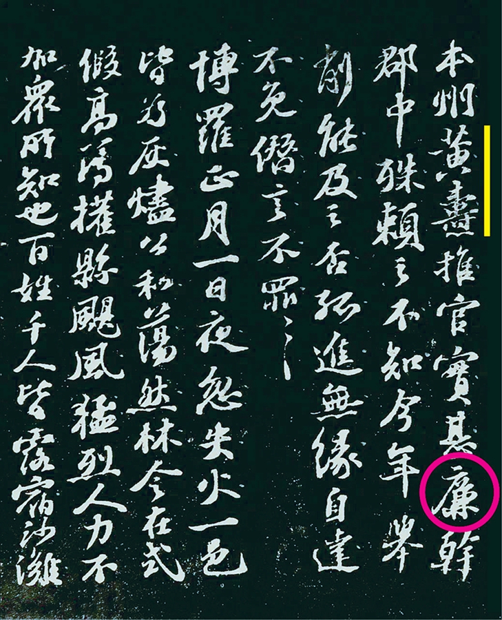 蘇軾書法作品中的“廉”字。