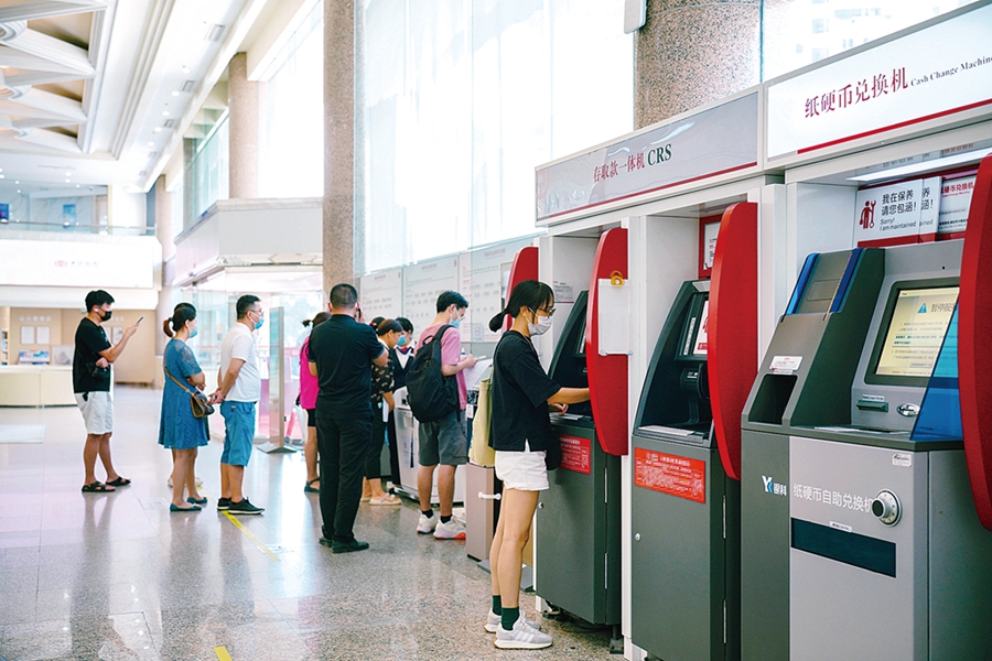 市民在銀行辦理業(yè)務(wù);葜萑請笥浾咧荛 攝
