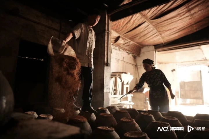 鐘興玲將曾小敏帶入一間古樸的房間內(nèi)。只見鐘興玲在酒甕間鋪撒上谷殼,點燃引子,酒甕瞬間燃起了跳動的火焰!芭疵拙漆労煤,我們會在這里用谷殼慢火炙烤。”鐘興玲說。原來,一壺甘醇的糯米酒要經(jīng)燃有暗火的火堆中“炙”出香郁味醇,才能夠令糧食搖身一變成為人間珍釀。與現(xiàn)代工藝相比,經(jīng)過慢火炙烤的糯米酒不僅更具口感更加醇香,還會留下對人體有益的微生物群!霸诮(jīng)過炙烤的‘歷練后’,糯米酒才更有味道和功力!辩娕d玲說。