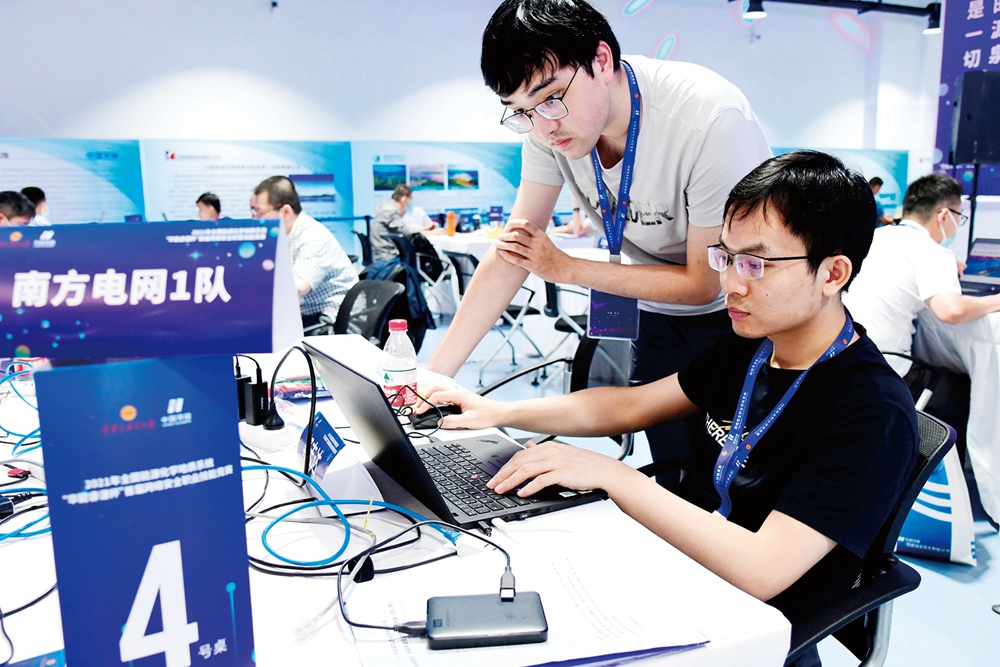郭志達(右一)在南京代表南方電網(wǎng)參加全國工業(yè)互聯(lián)網(wǎng)安全技術(shù)大賽。惠州供電局供圖