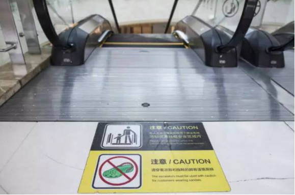 一些商場電梯旁也標(biāo)有警示,不允許穿洞洞鞋上電梯。