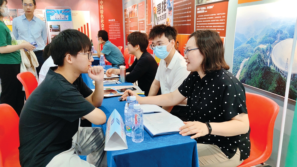 大學生與招聘人員交流;葜萑請笥浾呦憬鹑 駱國紅 攝