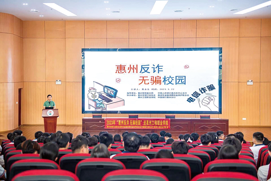 5月22日下午15時,惠州銀保監(jiān)分局、人民銀行惠州市中心支行指導,惠州市銀行業(yè)協(xié)會、惠州市金融消費權(quán)益保護聯(lián)合會、中國銀行惠州分行聯(lián)合舉辦“2023年‘惠州反詐 無騙校園’進惠州工程職業(yè)學院”第一期活動專題講座,旨在提高院校學生提高防詐意識,防范電信網(wǎng)絡(luò)詐騙。